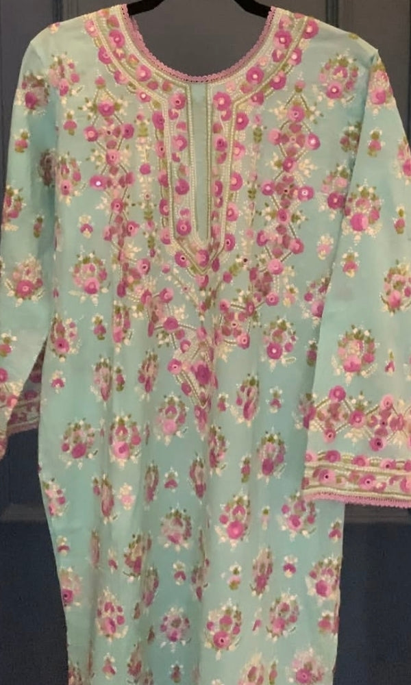 Lawn hand-embroidered kurta with hand-embroidered wide trouser