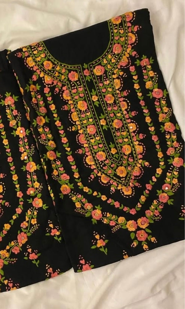Stitched hand-embroidered lawn kurta with embroidered chiffon dupatta
