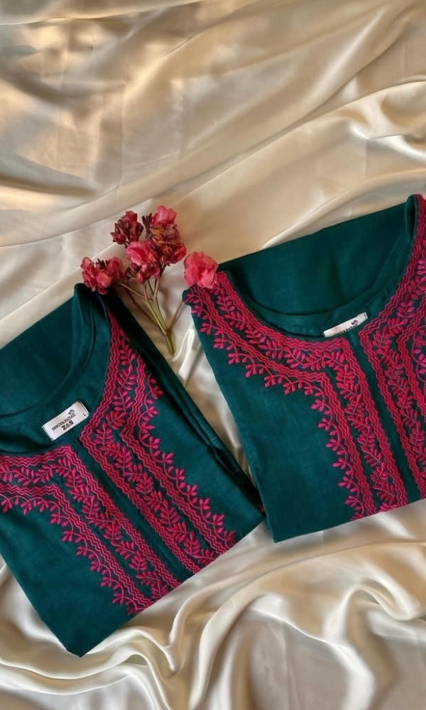 Fabric: Khaddar Embroidered kurta with plain shalwar